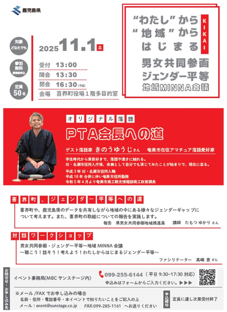 ”わたし”から”地域”からはじめる 男女共同参画・ジェンダー平等~地域MINNA会議 in喜界町を開催します!
