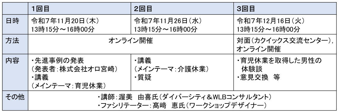 男性の育児・介護参加を含め,誰もがワークライフバランスを実現することができる職場づくりを促進するためのセミナーを開催します。